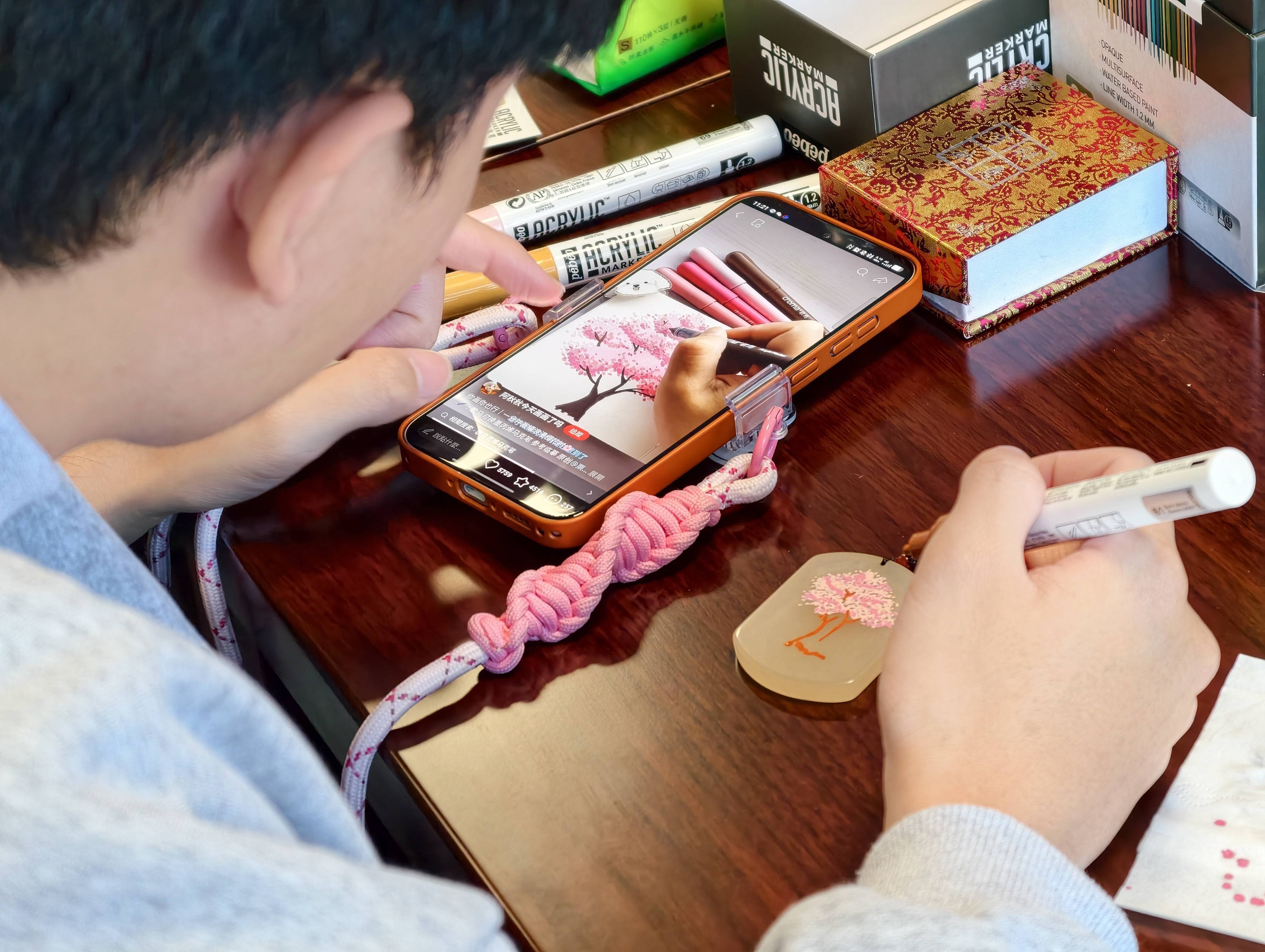 1月31日,台湾青年在位于新疆北屯市的北屯职业技术学校体验金丝玉手绘。新华社记者 贺小童 摄“葡萄特别甜,这是我对新疆的感知。”徐同学在金丝玉上画了“一串晶莹圆润的葡萄”。他看着作品满脸自豪,“我相信多年后再看到这块玉,我依然会清晰想起曾在新疆的印记。”