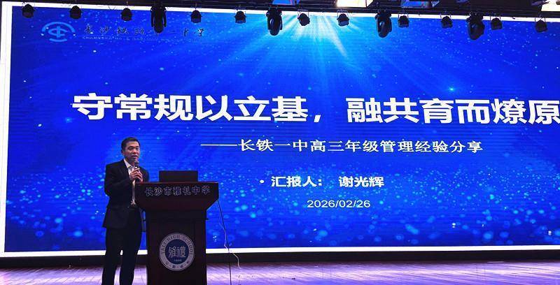 其中,长铁一中高三年级组长谢光辉以《守常规以立基,融共育而燎原》为题,紧扣“极致落实”与“深情共育”两大核心,生动诠释了学校高三团队如何以“四情”(关注学情、心情、感情、真情)为纽带,将常规工作做出温度,将家校合作做出深度。