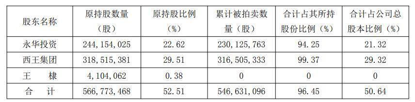 截至本公告披露日,西王集团及其一致行动人所持公司股份累计被拍卖(含本次被拍卖股份)情况如下: