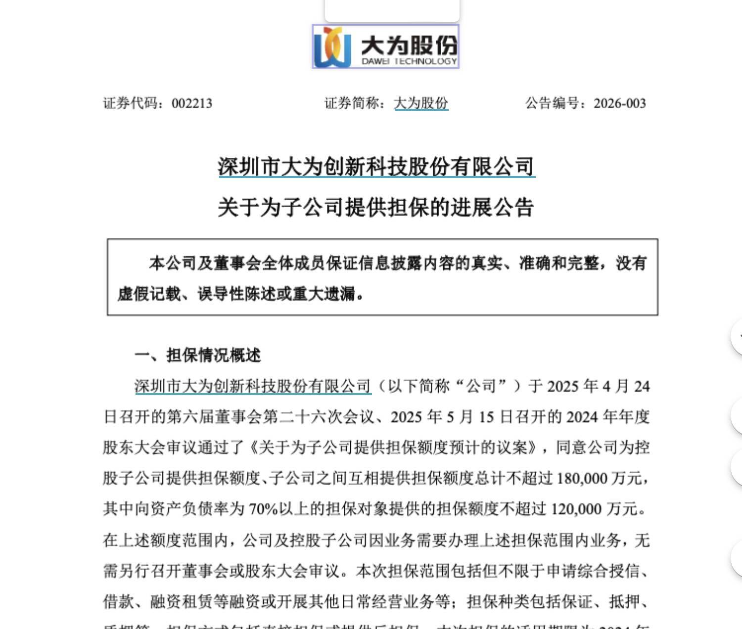 据悉,早在2025年,大为股份就已审议通过了总额高达18亿元的担保额度,为旗下控股子公司的融资需求铺平道路。截至最新公告日,实际已发生的担保总金额为3730万元,这个数字相对于巨大的授权额度而言,仍留有相当大的操作空间。这表明,未来一段时间内,类似的担保公告可能会继续出现,成为公司财务运作的常态。