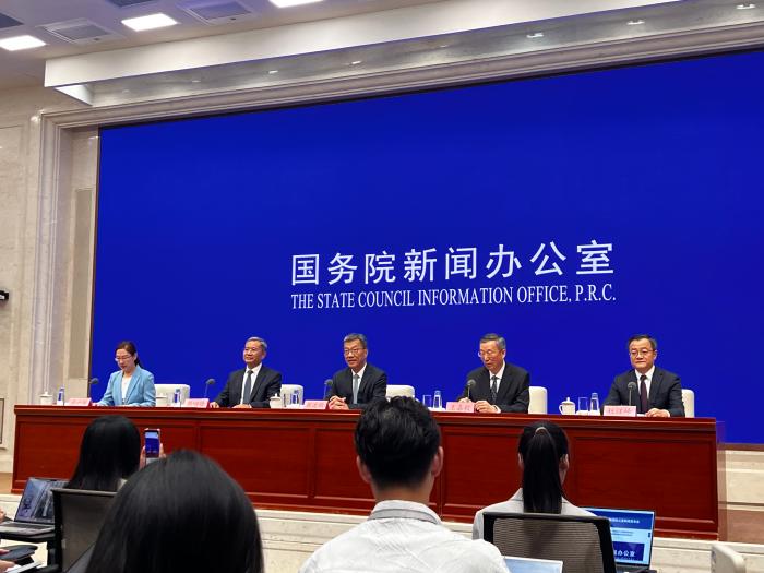 9月23日,国务院新闻办公室在北京举行“高质量完成‘十四五’规划”系列主题新闻发布会,教育部部长怀进鹏、教育部副部长王嘉毅、教育部副部长熊四皓、教育部副部长杜江峰介绍“十四五”时期加快建设教育强国进展成效,并答记者问。中新网记者 陈天浩 摄